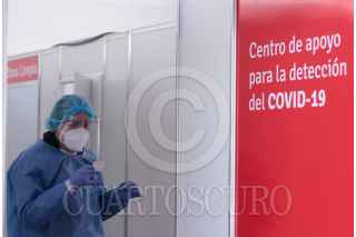 GUANAJUATO, GUANAJUATO, 31ENERO2021.- En el Aeropuerto del Bajío de Guanajuato colocaron un filtro sanitario donde aplican la prueba del Covid-19 a viajeros que van a los Estados Unidos, luego de que aquella nación impusiera este requisito para poder ingresar a su territorio. FOTO: ESTEBAN HERNÁNDEZ/CUARTOSCURO.COM
