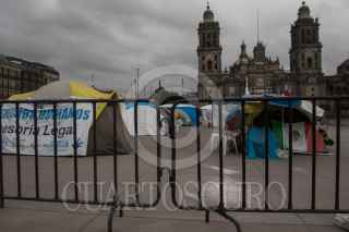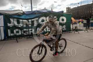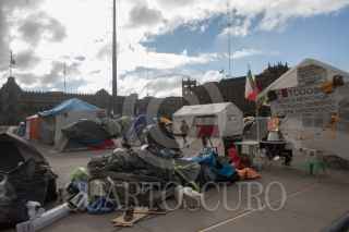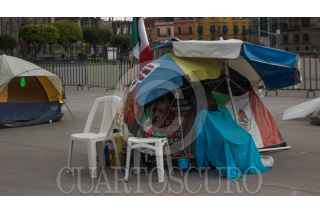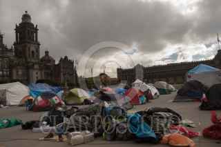 CIUDAD DE MÉXICO. 01FEBRERO2021.- Continúan en plantón el "Campamento México", a quienes el viernes por la noche les fueron retiradas 150 casas de campaña. FOTO: VICTORIA VALTIERRA/CUARTOSCURO.COM