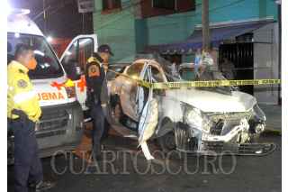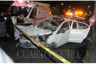 Ciudad de México, 02 febrero 2021 Un hombre perdio la vida y otro más resultó lesionado, al vol ar el auto en que viajaban y volcara impactando varios vehículos en calzada San Juan De Aragon en alcaldía de Gustavo A. Madero. Foto :Luis Carbayo/cuartoscuro.com