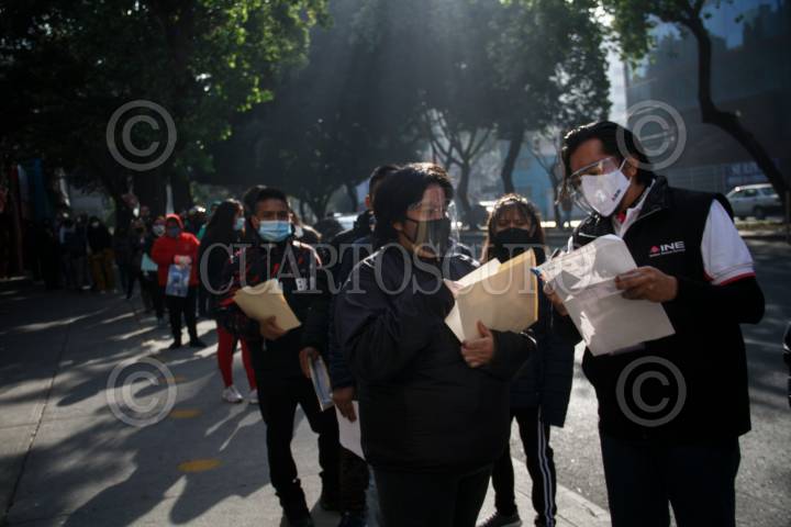 CIUDAD DE MÉXICO, 02FEBRERO2021.- Continúan las largas filas en los módulos de atención del Instituto Nacional Electoral (INE) para tramitar la credencial electoral, pues a partir de este lunes y hasta el 10 de febrero este trámite se podrá realizar sin agendar cita debido a la saturación del sistema. Este trámite se puede realizar de 08:00 a 18:00 horas y los requisitos son: acta de nacimiento original, comprobante de domicilio, identificación oficial y curp. FOTO: ANDREA MURCIA /CUARTOSCURO.COM