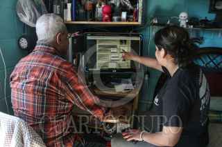 CIUDAD DE MÉXICO, 02FEBRERO2021.- Luego de que autoridades de gobierno dieran a conocer la página de registro para la vacunación de adultos mayores contra COVID-19, decenas de personas han reportado una saturación en dicha página. Enrique Rangel Mejia de 79 años de edad, intentó registrase para recibir la vacuna contra el coronavirus sin ningún éxito, pese a la ayuda de su nieta, Andrea Rangel de 26 años no se logró acceder a la página. FOTO: ROGELIO MORALES /CUARTOSCURO.COM