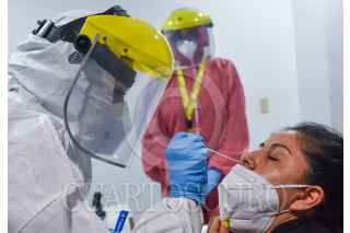 TOLUCA, ESTADO DE MÉXICO, 02FEBRERO2021.- Este martes fue inaugurado el laboratorio para pruebas COVID-19 en el Aeropuerto Internacional de Toluca (AIT) en donde se realizarán pruebas PCR y pruebas rápidas de antígenos, podrán realizarse pruebas trabajadores del aeropuerto, usuarios y público en general, los resultados los entregan por correo, WhatsApp o en persona. FOTO: CRISANTA ESPINOSA AGUILAR /CUARTOSCURO.COM