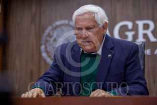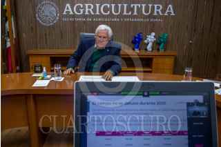 CIUDAD DE MÉXICO, 02FEBRERO2021.- En conferencia de prensa virtual desde las instalaciones de la Secretaría de Agricultura, su titular, Victor Manuel Villalobos Arámbula, indicó que este año se destinará mayor presupuesto al programa Producción para el Bienestar, de 13 mil 500 millones de pesos, en favor de productores de pequeña y mediana escala de granos, oleaginosas y café, con un aumento del 25 por ciento en los apoyos que reciben. Villalobos Arámbula, fue acompañado por el subsecretario Víctor Suárez Carrera, subsecretario de Alimentación y Competitividad; y Santiago Argüello Campos, director general de Fomento a la Agricultura. FOTO: SADER/CUARTOSCURO.COM