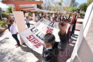 CHILPANCINGO, GUERRERO, 02FEBRERO2021.- Integrantes y representantes de las organizaciones que integran la Dirección Colectiva de Organizaciones Sociales, junto con normalistas de Ayotzinapa conmemoraron el 49 aniversario luctuoso del asesinato del profesor y luchador social Genaro Vázquez Rojas. En la Alameda Granados Maldonado, se escuchó la exigencia de la presentación con vida de los 43 desaparecidos de Ayotzinapa y justicia para los caídos, por parte de los estudiantes y las organizaciones. Francisco Echeverría de Jesús, del Colectivo ‘Los Olvidados de Ayotzinapa’, reprochó que haya políticos y gobiernos que estén ahora recordando a Genaro Vázquez y su lucha, cuando fue una víctima más del Estado, como sigue ocurriendo hasta la fecha. El representante de la Normal Rural de Ayotzinapa, de donde precisamente estudió Vázquez Rojas, originario de San Luis Acatlán, lo reivindicó como compañero de lucha, y si viviera no dudó que seguiría luchando contra las injusticias. Desde ese mismo espacio, donde alguna vez estuvo el luchador social peleando por la Autonomía Universitaria, el estudiante también exigió a las autoridades no se olviden de buscar a los 43 estudiantes desaparecidos y castigar a los asesinos. Los estudiantes, criticaron que ni siquiera el gobierno de Andrés Manuel López Obrador esté cumpliendo al pueblo mexicano, ni en materia de justicia, ni en educación, y el caso más claro son los 43 y la entrega de la Educación a grandes empresas José Luis García Ayala, catedrático de la UPN, pidió a los guerrerenses tener memoria de la lucha social, y a los mexicanos que recuerden cuánto ha aportado Guerrero para la construcción del país. Nicolás Chávez Adame, dirigente de la Asamblea Popular de los Pueblos de Guerrero, pidió a los presentes en la Alameda Granados Maldonado, guardar un minuto de silencio en memoria de Genaro Vázquez. Posteriormente llamó a los tres niveles de gobierno a esclarecer los hechos del 26 y 27 de septiembre de 2014 en Iguala, tanto con los asesinados como los desaparecidos en esas y otras fechas. FOTO: DASSAEV TÉLLEZ ADAME /CUARTOSCURO.COM