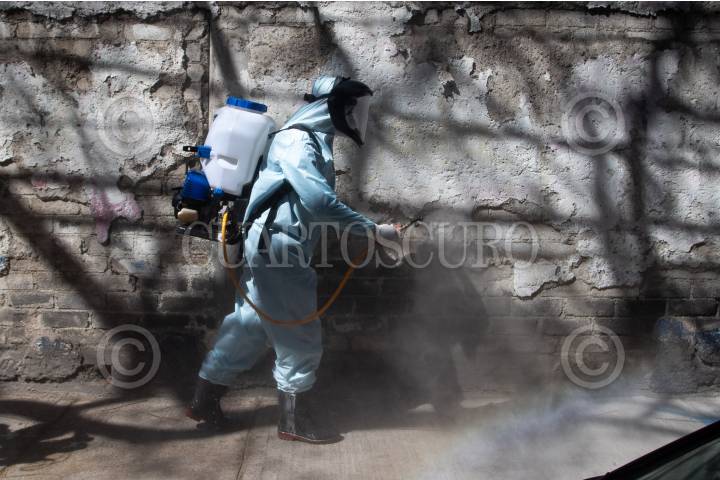 CIUDAD DE MÉXICO, 03FEBRERO2021.- Trabajadores de limpieza desinfectaron calles y domicilios como parte de la brigada de sanitización en la colonia Barrio San Pedro, alcaldía Xochimilco con la finalidad de no seguir propagando el virus del SARSCOV-2. El compuesto para desinfectar está hecho a base de sales cuaternarias y después de hora y media aproximadamente se pueden realizar actividades en el lugar que haya sido sanitizado. FOTO: GRACIELA LÓPEZ /CUARTOSCURO.COM