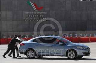 CIUDAD DE MÉXICO, 03FEBRERO2021.- Un policía de la Caseta de cobro México-Cuernavaca, ayuda a un automovilista a empujar su carro que se descompuso justo al momento de cruzar la caseta. FOTO: ROGELIO MORALES /CUARTOSCURO.COM