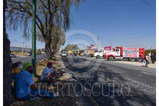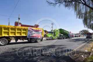 SAN ANTONIO LA ISLA, ESTADO DE MÉXICO, 04FEBRERO2021.- Transportistas integrantes de diversos sindicatos se manifestaron en la carretera Toluca-Tenango a la altura del municipio de San Antonio la Isla se manifestaron se respeten sus derechos laborales, que por la pandemia por COVID-19 se han visto vulnerados, estuvieron ocupando un carril en ambos sentidos y exigieron hablar con autoridades estatales de la Secretaría del Trabajo. FOTO: CRISANTA ESPINOSA AGUILAR /CUARTOSCURO.COM
