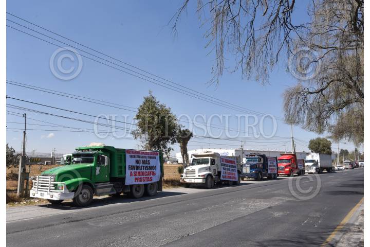 SAN ANTONIO LA ISLA, ESTADO DE MÉXICO, 04FEBRERO2021.- Transportistas integrantes de diversos sindicatos se manifestaron en la carretera Toluca-Tenango a la altura del municipio de San Antonio la Isla se manifestaron se respeten sus derechos laborales, que por la pandemia por COVID-19 se han visto vulnerados, estuvieron ocupando un carril en ambos sentidos y exigieron hablar con autoridades estatales de la Secretaría del Trabajo. FOTO: CRISANTA ESPINOSA AGUILAR /CUARTOSCURO.COM