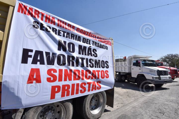 SAN ANTONIO LA ISLA, ESTADO DE MÉXICO, 04FEBRERO2021.- Transportistas integrantes de diversos sindicatos se manifestaron en la carretera Toluca-Tenango a la altura del municipio de San Antonio la Isla se manifestaron se respeten sus derechos laborales, que por la pandemia por COVID-19 se han visto vulnerados, estuvieron ocupando un carril en ambos sentidos y exigieron hablar con autoridades estatales de la Secretaría del Trabajo. FOTO: CRISANTA ESPINOSA AGUILAR /CUARTOSCURO.COM