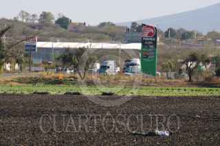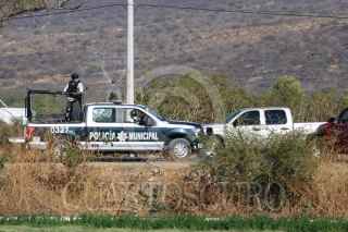 CORTAZAR, GUANAJUATO, 04FEBRERO2021.- Hombres armados y Agentes en Investigación Criminal se enfrentaron a balazos por varios minutos en la carretera Cortazar-Salvatiera, en la comunidad de Valencia de Fuentes. En la balacera un civil murió y los agentes detuvieron a uno de sus cómplices, el cual intentó huir. El agresor que falleció en el enfrentamiento quedó tendido en un terreno de cultivo, a pie de carretera. Casquillos percutidos quedaron sobre la carrera y se aseguró al menos una arma de fuego de los agresores y un vehículo en el que viajaban. FOTO: DIEGO COSTA/CUARTOSCURO.COM