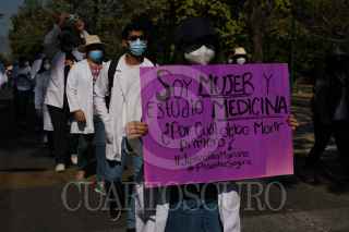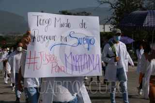 TUXTLA GUTIÉRREZ, CHIAPAS, 05FEBRERO2021.- Estudiantes de medicina de la Universidad Autónoma de Chiapas, Universidad Intercultural de Chiapas, Universidad de Sur, Universidad Pablo Guardado y la Universidad Salazar marcharon esta mañana exigiendo justicia por el probable feminicidio de la estudiante Mariana de la UNACH durante el cumplimiento de su servicio social en el municipio de Ocosingo. Al finalizar la marcha los estudiantes cerraron las instalaciones de la Secretaria de Salud para exigir un diálogo con las autoridades de esta dependencia y de esta forma sea escuchado su pliego petitorio. FOTO: ISABEL MATEOS /CUARTOSCURO.COM