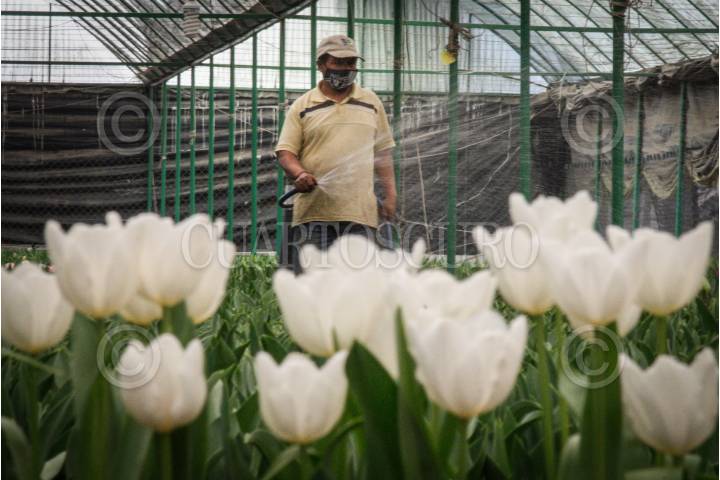 CIUDAD DE MÉXICO, 05FEBRERO2021.- Productores de la zona de San Luis Tlaxialtemalco Xochimilco se alistan para la tradicional venta de tulipanes para el próximo 14 de febrero, día del amor y la amistad; Los bulbos de estar flor son importadas de holanda. Debido a la contingencia sanitaria, este febrero se produjeron únicamente 20 mil ejemplares que estan listas para su venta, lo que representa 50 por ciento menos de su producción luego de la pérdida ocasionada desde el año pasado debido a la contingencia derivada de la pandemia por covid-19. FOTO: MARIO JASSO/CUARTOSCURO.COM