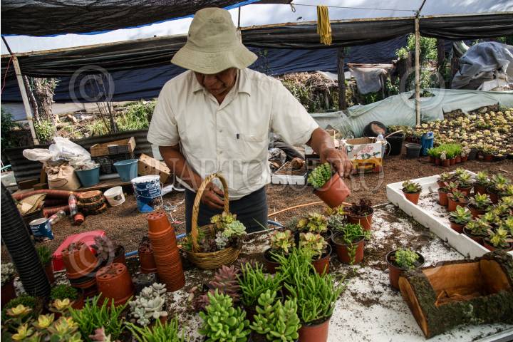 CIUDAD DE MÉXICO, 05FEBRERO2021.- Como alternativa para la venta de plantas sacras mejor conocidas como "suculentas" la familia Jiménez, productores de San Luis Tlaxialtemalco en Xochimilco, realizan arreglos coloridos en canastas, troncos y macetas como una alternativa de plantas vivas para el 14 de febrero, día del amor y la amistad. FOTO : MARIO JASSO/CUARTOSCURO.COM
