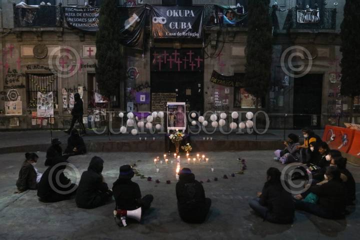 CIUDAD DE MÉXICO, 05FEBRERO2021.- Integrantes del Bloque Negro, familiares y Aracely Osorio, madre de Lesvy Osorio, víctima de feminicidio, realizaron una velada en memoria de Fátima Quintanar, menor de 12 años, quién fue víctima de feminicidio hace seis años y fue encontrada cerca de su casa enterrada en el Estado de México. El acto se llevó a cabo afuera de Okupa Casa de Refugio. FOTO: GRACIELA LÓPEZ /CUARTOSCURO.COM