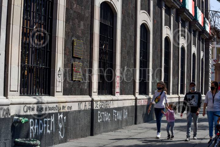 TOLUCA, ESTADO DE MÉXICO, 06FEBRERO2021.- Feministas Radicales se manifestaron en contra de la Ley de Identidad de Género, acudieron a la Cámara de Diputados en donde realizaron pintas y rompieron los vidrios del recinto legislativo; personal de Bomberos de Toluca revisaron el lugar. FOTO: CRISANTA ESPINOSA AGUILAR /CUARTOSCURO.COM