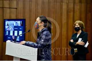 CIUDAD DE MÉXICO, 06FEBRERO2021.- Claudia Sheinbaum, jefa de gobierno, Rosaura Ruiz, secretaria de educación, ciencia tecnología e innovación de la ciudad durante la conferencia de prensa de la Jefatura de Gobierno. FOTO:GOBIERNO DE LA CIUDAD DE MÉXICO /CUARTOSCURO.COM