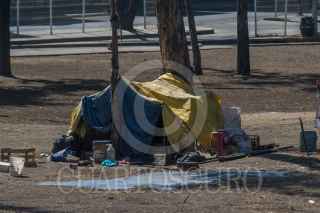 CIUDAD DE MÉXICO, 07FEBRERO2021.- Una vivienda improvisada se observa a un costado de avenida Insurgentes, a la altura de Montevideo. FOTO: MOISÉS PABLO/CUARTOSCURO.COM