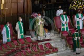 CIUDAD DE MÉXICO, 07FEBRERO2021.- El Arzobispo Primado de México, Carlos Aguiar Retes, encabezó la homilía en la Basílica de Guadalupe, en la cual se pidió por la salud del Jefe del Ejecutivo, Andrés Manuel López Obrador, quien se encuentra restableciendo del Covid-19. FOTO: MOISÉS PABLO/CUARTOSCURO.COM