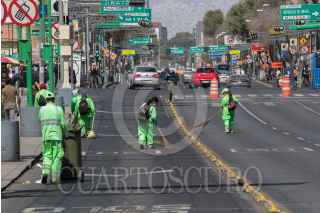 CIUDAD DE MÉXICO, 07FEBRERO2021.- Personal de limpieza barren Eje Central, a la altura de avenida Hidalgo. FOTO: MOISÉS PABLO/CUARTOSCURO.COM