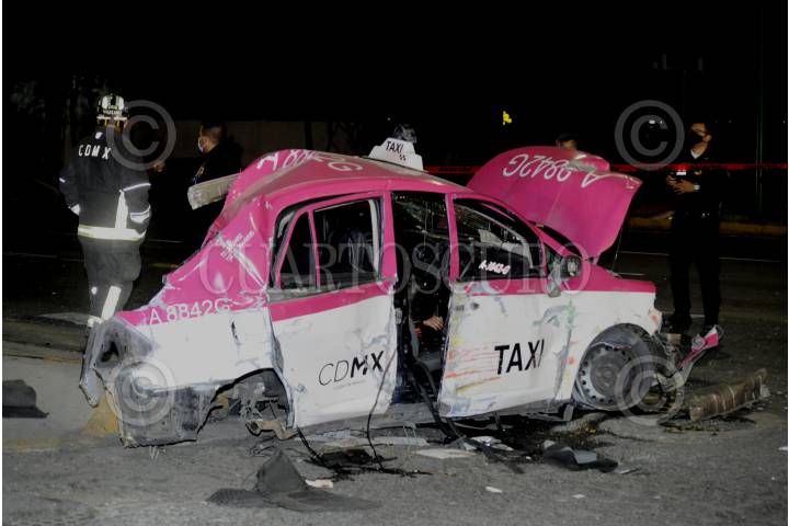 Ciudad de México, 08 febrero 2021. Un hombre perdio la vida abordó de un auto de servicio público, al impactar a toda velocidad y partir el vehículo contra un poste, sobre avenida Cien Metros a la altura de la calle 1K en la colonia Panamericana en alcaldía de Gustavo A. Madero. Foto :Luis Carbayo/cuartoscuro.com