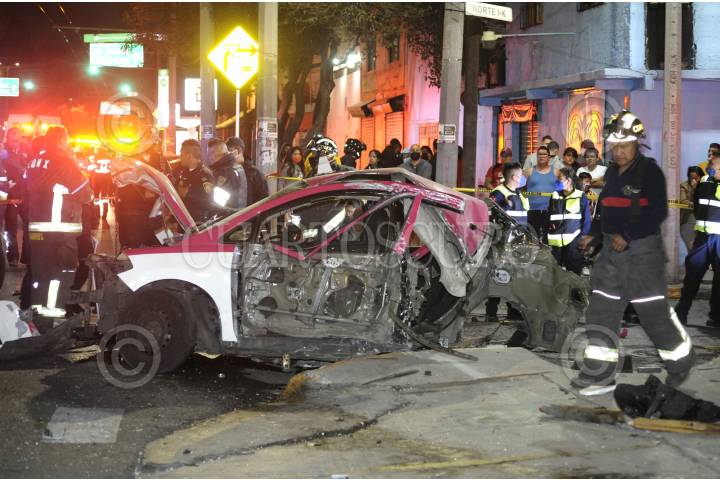 Ciudad de México, 08 febrero 2021. Un hombre perdio la vida abordó de un auto de servicio público, al impactar a toda velocidad y partir el vehículo contra un poste, sobre avenida Cien Metros a la altura de la calle 1K en la colonia Panamericana en alcaldía de Gustavo A. Madero. Foto :Luis Carbayo/cuartoscuro.com