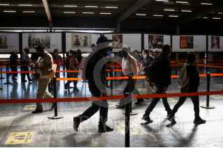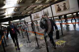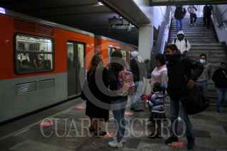 CIUDAD DE MÉXICO, 08FEBRERO2021.- La línea azul retomó actividades en la capital desde las 05:00 horas. Claudia Sheinbaum Jefa de Gobierno y Florencia Serranía, director del STC Metro, anunciaron que la red que va de Tasqueña a Cuatro Caminos inició sus traslados con 10 trenes. Se espera que en la primera jornada el sistema de movilidad atienda a cerca de 900 mil usuarios. FOTO: ANDREA MURCIA /CUARTOSCURO.COM