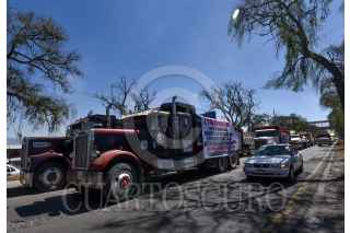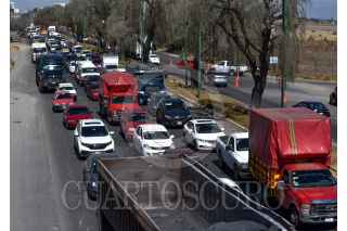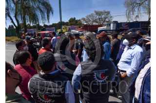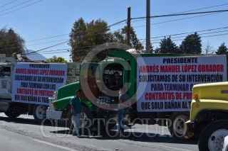 SAN ANTONIO LA ISLA, ESTADO DE MÉXICO, 08FEBRERO2021.- Por segunda ocasión transportistas integrantes de la Confederación de Organizaciones y Sindicatos Unidos de México bloquearon la carretera Toluca-Tenango a la altura del municipio de San Antonio la Isla, pidiendo la intervención del presidente Andrés Manuel López Obrador para que se acaben los contratos que sólo benefician a unos cuantos, al no ser considerados en el programa de Caminos del Sur en el Estado de México en donde se repararán las principales vialidades, lo que consideran desigual y viola sus derechos laborales, denuncian que han sido amenazados para que no continúen con sus protestas. FOTO: CRISANTA ESPINOSA AGUILAR /CUARTOSCURO.COM