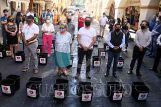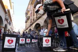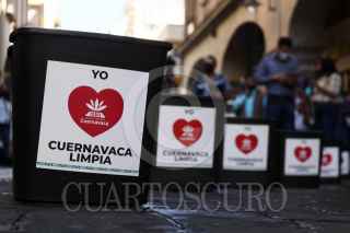 CUERNAVACA, MORELOS, 08FEBRERO2021.- Francisco Villalobos, alcalde de la capital encabeza la entrega de botes de basura a comercios del centro histórico, actualmente no existen botes de basura en la vía pública. FOTO: MARGARITO PÉREZ RETANA /CUARTOSCURO.COM