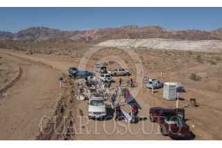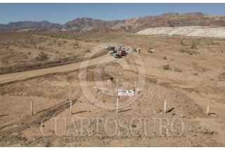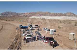 MEXICALI, BAJA CALIFORNIA, 08FEBRERO2021.- Un grupo de hombres y mujeres pertenecientes a distintos ejidos mantienen un plantón en el acceso principal a la mina de oro Real de Ángeles, ubicada en la carretera libre Mexicali - San Felipe. Los ejidatarios son propietarios de más de tres mil hectaréas que alquilan a Grupo Frisco, cuyo propietario es el empresario Carlos Slim. De acuerdo a los manifestantes, no se ha llegado a un acuerdo en la renovación del contrato de arrendamiento. FOTO: CUARTOSCURO.COM