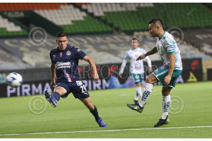 LEÓN, GUANAJUATO, 08FEBRERO2021.- Las Chivas del Guadalajara están venciendo a León en su casas con marcador de 2-1, en partido correspondiente a la Jornada 5 del Torneo Guard1anes Clausura 2021. Los goles hasta el momento son obra de Jesús Sánchez García y José Juan Macías y un autogol Briseño. FOTO: ESTEBAN HERNÁNDEZ/CUARTOSCURO.COM