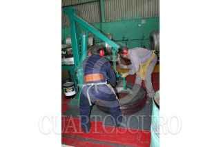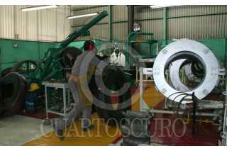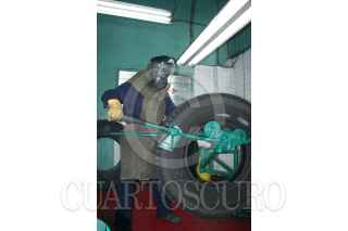 MÈXICO, D.F. 13JULIO2006.- Trabajadores en el taller de tranvìas y medios de transporte electricos del D.F. dan los ùltimos toques para la elaboraciòn de llantas. FOTO: Paola Hidalgo/CUARTOSCURO.COM