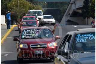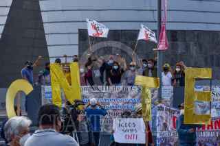 TOLUCA, ESTADO DE MÉXICO, 09FEBRERO2021.- Maestros integrantes de la Coordinadora Nacional de Trabajadores de la Educación (CNTE) de la Sección XVIII de Michoacán y XVI y XLII de Jalisco en su paso por la ciudad de Toluca como parte de la Caravana por la Estabilidad Laboral y Salarial que tiene como destino la CDMX; realizaron una concentración en la explanada de las Torres Bicentenario en donde exigieron estabilidad salarial, pago de sueldos entre otras cosas mientras una comisión sostenía una reunión con autoridades educativas. FOTO: CRISANTA ESPINOSA AGUILAR /CUARTOSCURO.COM
