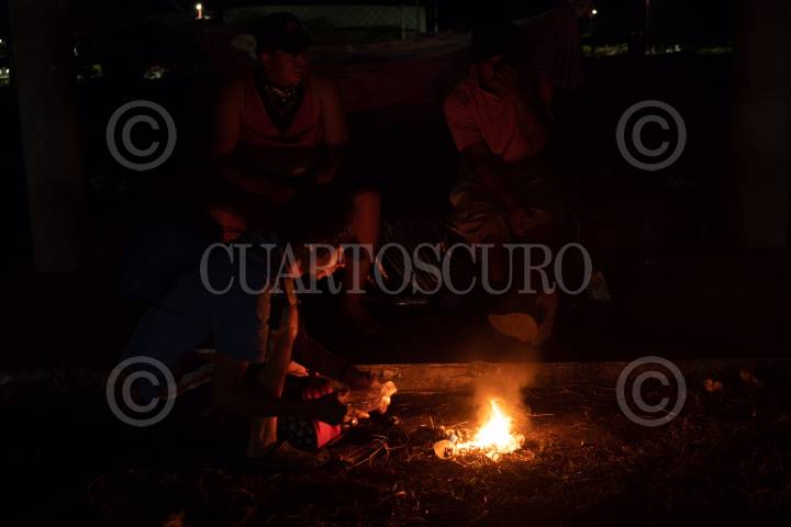 TENOSIQUE, TABASCO, 09FEBRERO2021.- Migrantes en su mayoría Hondureños permanecen en las inmediaciones del albergue La 72 mientras esperan iniciar trámites migratorios o continuar con su objetivo de llegar a Estados Unidos. Las tormentas Iota y Eta ocasionaron que miles de hondureños quedaran en situación de calle ya que sus casas se inundaron o quedaron sepultadas en el lodo, lo cual los obligó más allá de la violencia y falta de trabajo en el país a migrar para buscar oportunidades de vivir mejor. Durante la noche algunos de los migrantes son recibidos en el albergue para pasar la noche y cenar. Los migrantes son alojados en un salón de usos múltiples el cual en una de sus paredes alberga un mural en homenaje a los migrantes masacrados en San Fernando hace más de diez años, donde perdieron la vida 193 personas provenientes de diferentes países. FOTO: ISABEL MATEOS /CUARTOSCURO.COM