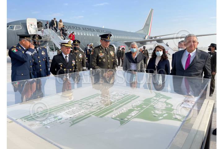 ZUMPANGO, ESTADO DE MÉXICO, 10FEBRERO2021.- Andrés Manuel López Obrador, Presidente de México, encabezó la inauguración la Base Aérea Militar No. 1, en Santa Lucía. El mandatario arribo en una aeronave de la Fuerza Aérea Mexicana. FOTO: PRESIDENCIA/CUARTOSCURO.COM