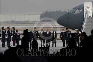 ZUMPANGO, ESTADO DE MÉXICO, 10FEBRERO2021.- Andrés Manuel López Obrador, presidente de México, encabezó la inauguración de la pista de aterrizaje del Nuevo Aeropuerto Internacional Félipe Ángeles. FOTO: MARIO JASSO/CUARTOSCURO.COM