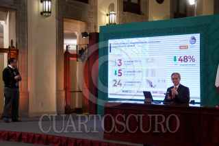 CIUDAD DE MÉXICO, 10FEBRERO2021.- Hugo López-Gatell Ramírez, subsecretario de Prevención y Promoción de la Salud y José Luis Alomía Zegarra, director general de epidemiología durante el informe diario de COVID-19 que se lleva a cabo en Palacio Nacional donde se destacó el tema de la aplicación y distribución de la vacuna. FOTO: ANDREA MURCIA /CUARTOSCURO.COM