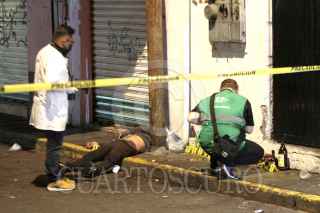 Ciudad de México, 11 febrero 2021. Un hombre fue asesinado por disparos de arma de fuego, luego de una riña entre amigos que tomaban bebidas embriagantes, sobre la calle San Lorenzo esquina con la avenida Tláhuac en el pueblo de San Lorenzo Tezonco. Foto: Luis Carbayo/cuartoscuro.com