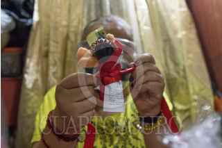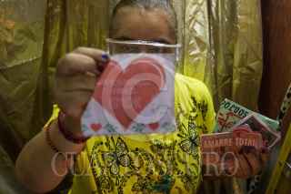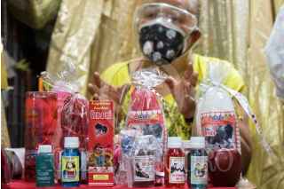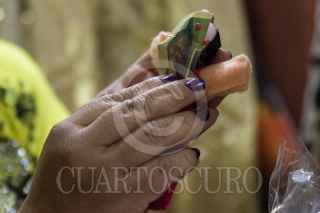 CIUDAD DE MÉXICO, 11FEBRERO2021.- Lizbeth "La Bruja del Amor" garantiza sus trabajos para quienes estén interesados en atraer el amor de aquella persona que les mueva el tapete. A través de amarres y pociones; como la miel de amor, feromonas, gotas de dominación, polvos mágicos para el amor, loción ven a mí, yo puedo más que tú, legítimo polvo de la víbora, entre otras, son las que utiliza para asegurarle a sus clientes el cariño de aquella persona que se hace la difícil. La mujer, quien lleva años atendiendo en el pasillo 12 del mercado de Sonora, mostró la preparación de un endulzamiento, que es inyectar gotas Dominador a un chocolate el cual debe comer la persona deseada. También dice que una técnica infalible es el amarre, que consiste en clavar con un alfiler la foto de la persona amada en un muñeco, después se amarra con un listón rojo junto con la oración "Los Siete Nudos", posteriormente se mete en un frasco y para que el embrujamiento se más efectivo se le puede poner miel del amor y canela. Otros servicios que ofrece son la preparación de veladoras para el trabajo, dinero, corte de salaciones, despojo de envidias y amarres para casamiento. Señala que sus clientes son principalmente mujeres, pero también acuden hombres, de todas las edades y orientaciones sexuales. Sus servicios aumentan los meses de diciembre y febrero, dice que el caso del primero es por que las personas no quieren pasar solos las fiestas navideñas. FOTO: MOISÉS PABLO/CUARTOSCURO.COM
