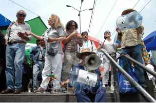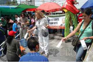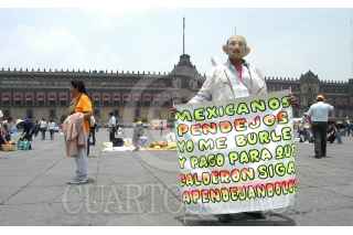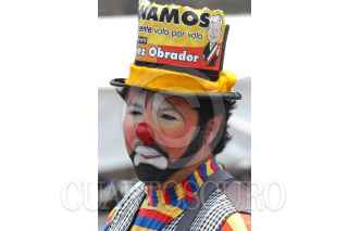 MEXICO D.F. 13JULIO2006.- Simpatizantes del candidato presidencial de la alianza Por el Bien de Todos realizan un mitin-informativo en el zócalo capitalino. Un payaso muestra su apoyo al abanderado perredista. FOTO: Germán Romero/CUARTOSCURO.COM