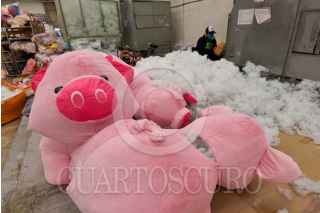 XONACATLÁN, ESTADO DE MÉXICO, 11 FEBRERO2021.- Xonacatlán es un municipio que se dedica a la elaboración de muñecos de peluche, es mejor conocido como “Ciudad Peluche”; los peluches para el festejo del 14 de Febrero ya se encuentran listos a pesar de que los negocios dedicados a la elaboración de estos muñecos han tenido que realizar diversos cambios a raíz de la pandemia por COVID-19, para no dejar de trabajar comenzaron a elaborar cubrebocas, su producción bajó a un 70 por ciento, pensando que por la contingencia no tendrían grandes ventas y redujeron su personal para evitar algún contagio y la mayoría se lleva el trabajo a sus casas para no concentrar a tantas personas. Osos con corazones, unicornios, corazones musicales, puerquitos son algunos de los peluches que la gente busca regalar para este festejo del Día del Amor y la Amistad. FOTO: CRISANTA ESPINOSA AGUILAR /CUARTOSCURO.COM