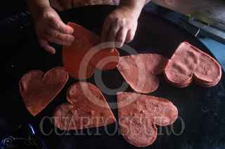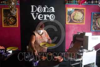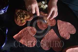 CIUDAD DE MÉXICO, 11FEBRERO2021.- El restaurante de cocina mexicana extravagante "Doña Vero" se dedica a elaborar tacos con tortillas en forma de corazón hechos con masa de betabel, chia y amaranto. Vero Mendoza, de 56 años, lleva 8 años a cargo de su negocio y desde el 2013 comenzó con la novedad de estas tortillas para la celebración del Día del Amor y la Amistad. Para este festejo el restaurante ofrece varias promociones para que los clientes degusten los tacos de chapulines, cochinita pibil, longaniza y champiñones con queso y platillos con sabores prehispánicos y tradicionales. El horario de atención es de 9 a 21 horas en la parte de la terraza para evitar contagios de Covid-19 y servicio a domicilio. El restaurante "Doña Vero" se encuentra en Monterrey 313, colonia Roma Sur, alcaldía Cuauhtémoc. FOTO: GRACIELA LÓPEZ /CUARTOSCURO.COM