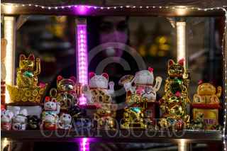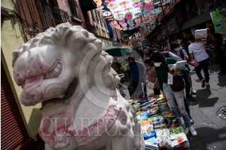 CIUDAD DE MÉXICO, 11FEBRERO2021.- La tradición del año nuevo chino que se celebrará a partir del 12 de febrero, corresponde en esta ocasión para el buey al cual le atribuyen el orden, la disciplina, el esfuerzo, el trabajo y la familia. Para este año las actividades culturales en el barrio chino ubicado sobre la calle Dolores en el centro histórico no contará con ningún actividad cultural debido a la emergencia sanitaria por covid-19 que continúa en la capital del país, sin embargo, en la zona los restaurantes y locales continuarán abiertos, además de alta presencia de vendedores ambulantes. FOTO: MARIO JASSO/CUARTOSCURO.COM