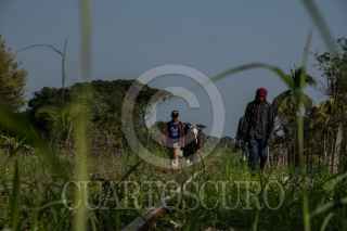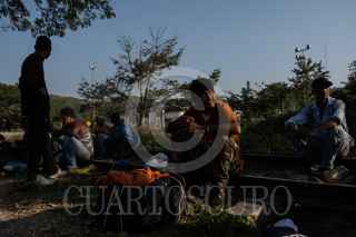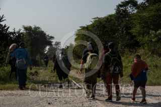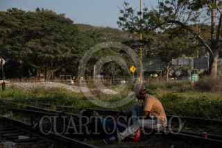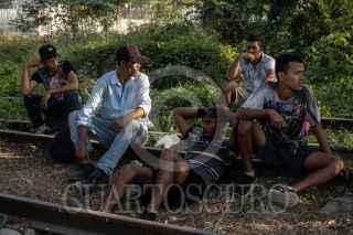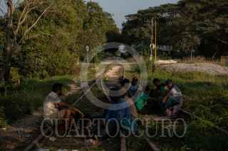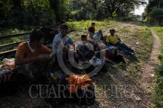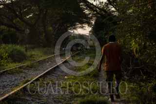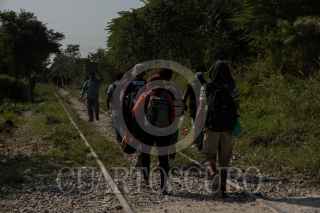 MACUSPANA, TABASCO, 11FEBRERO2021.- Migrantes hondureños caminas sobre las vías del tren rumbo al norte del país para cumplir con su objetivo de llegar a Estados Unidos, el flujo migratorio desde las primeras semanas del año ha incrementado considerablemente debido a el desempleo a causa de la pandemia, el impacto devastador que causaron las tormenta Eta e Iota en Honduras y la violencia a la que están expuestos todos los dias en los diferente departamentos de este país. FOTO: ISABEL MATEOS /CUARTOSCURO.COM