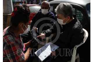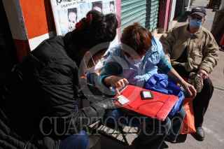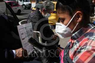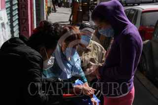 CIUDAD DE MÉXICO, 12FEBRERO2021.- Dalia Davila y Fernando Lozano, es una pareja que desde hace dos semanas se han dedicado a apoyar a adultos mayores con su registro en la página del gobierno para poder recibir la vacuna contra el COVID-19. Ellos son propietarios de la tortillería la Abuela, ubicada en la alcaldía Tlalpan, colonia lo Héroes de Padierna, lugar al que desde tempranas horas acuden personas de la tercera edad, para solicitar ayuda en su registro, bajo el nombre de "Abrazo en la Pandemia", Dalia estima que se ayudado más de 500 personas a generar su folio para la vacuna. Cabe mencionar que está solo es una forma en la que los propietarios ayudan a la sociedad ya que con la campaña #TodosporLeo, la pareja mantiene su apoyo a a personas adultas en situación vulnerable con comida y ropa, así como a los niños a quienes les brindan espacios para tomar clases a distancia. FOTO: ROGELIO MORALES /CUARTOSCURO.COM