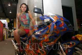 MEXICO, D.F., 13JUNIO2006.-Una modelo posa en un motocicleta como parte de los atractivos que ofrece la Expo Moto que se realiza en el World Trade Center. FOTO: Moisés Pablo/CUARTOSCURO.COM
