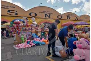 CIUDAD DE MÉXICO, 12FEBRERO2021.- Locatarios del Mercado Sonora continúan vendiendo osos de peluche y globos con motivo de la celebración del Día del Amor y la Amistad. Debido a la pandemia del Covid.19 los puestos dejaron espacios para que la gente pueda transitar y no propagar más contagios de Covid-19. FOTO: GRACIELA LÓPEZ /CUARTOSCURO.COM