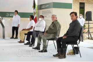 ZINACATEPEC, PUEBLA, 12FEBRERO2021.- Andrés Manuel López Obrador, presidente de México, durante la Inauguración de primera etapa de la Universidad para el Bienestar “Benito Juárez” sede Zinacatepec. Lo acompañaron Clemente Xincaxtle Lezama, coordinador académico de la Universidad para el Bienestar ‘Benito Juárez’ sede Zinacatepec; Miguel Barbosa Huerta, gobernador de Puebla; Raquel Sosa Elízaga, directora general de Universidades para el Bienestar y Luis Enrique Contreras Ponce, presidente municipal de San Sebastián Zinacatepec. FOTO: PRESIDENCIA /CUARTOSCURO.COM