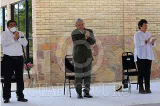ZINACATEPEC, PUEBLA, 12FEBRERO2021.- Andrés Manuel López Obrador, presidente de México, durante la Inauguración de primera etapa de la Universidad para el Bienestar “Benito Juárez” sede Zinacatepec. Lo acompañaron Clemente Xincaxtle Lezama, coordinador académico de la Universidad para el Bienestar ‘Benito Juárez’ sede Zinacatepec; Miguel Barbosa Huerta, gobernador de Puebla; Raquel Sosa Elízaga, directora general de Universidades para el Bienestar y Luis Enrique Contreras Ponce, presidente municipal de San Sebastián Zinacatepec. FOTO: MIREYA NOVO /CUARTOSCURO.COM