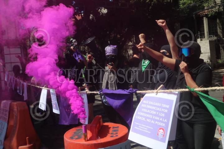 CIUDAD DE MÉXICO, 13FEBRERO2022.- Integrantes de colectivas feministas protestaron afuera de la CEN de Morena en contra del candidato a gobernador de Guerrero, Félix Salgado Macedonio, quién es señalado por cinco casos de abuso y violencia hacia las mujeres en este estado. Durante la protesta las mujeres cerraron con cadena la puerta de las instalaciones, cerraron la vialidad en la calles de Monterrey y Chihuahua, colonia Roma Norte y permanecen en plantón con el propósito de mantenerse hasta mañana. FOTO: GRACIELA LÓPEZ /CUARTOSCURO.COM