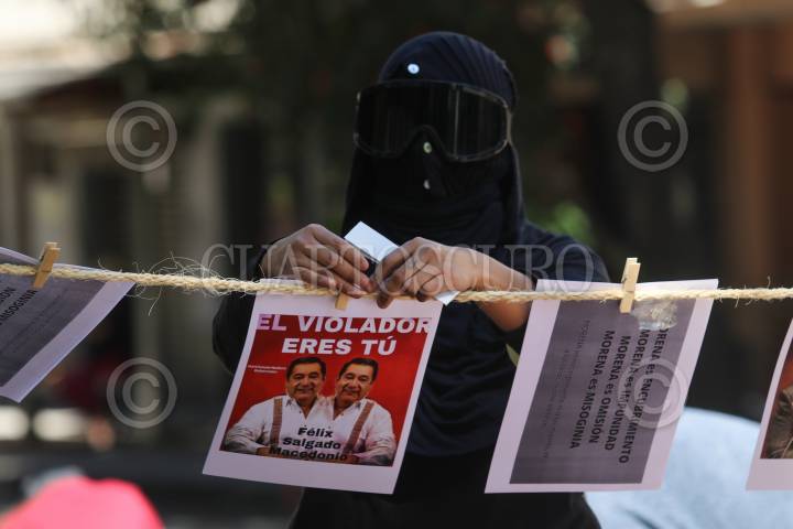 CIUDAD DE MÉXICO, 13FEBRERO2022.- Integrantes de colectivas feministas protestaron afuera de la CEN de Morena en contra del candidato a gobernador de Guerrero, Félix Salgado Macedonio, quién es señalado por cinco casos de abuso y violencia hacia las mujeres en este estado. Durante la protesta las mujeres cerraron con cadena la puerta de las instalaciones, cerraron la vialidad en la calles de Monterrey y Chihuahua, colonia Roma Norte y permanecen en plantón con el propósito de mantenerse hasta mañana. FOTO: GRACIELA LÓPEZ /CUARTOSCURO.COM